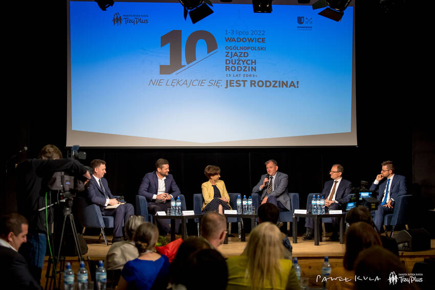 W sobotę, 2 lipca 2022 r., w Wadowickim Centrum Kultury w ramach X Zjazdu Dużych Rodzin odbył się panel społeczno-ekonomiczny pt. „Polityka rodzinna - co udało się osiągnąć i co dalej?” z udziałem Minister Pracy i Polityki Społecznej Marleny Maląg, Ministra Sportu i Turystyki Kamila Bortniczuka, przewodniczącego Rady do spraw Rodziny, Edukacji i Wychowania przy Prezydencie RP prof. Andrzeja Waśko, eksperta Związku Dużych Rodzin „Trzy Plus” prof. Marka Kośnego z Uniwersytetu Ekonomicznego we Wrocławiu oraz Burmistrza Wadowic Bartosza Kalińskiego. Dyskusję poprowadził prof. Łukasz Hardt z Uniwersytetu Warszawskiego.